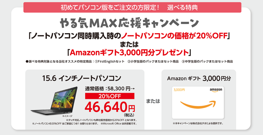 ※パソコンがご不要な場合、Amazon ギフト券 3,000 円分 プレゼント