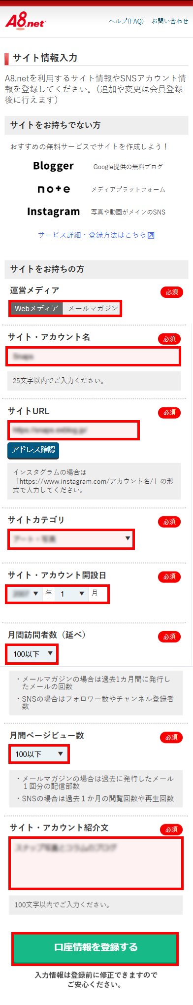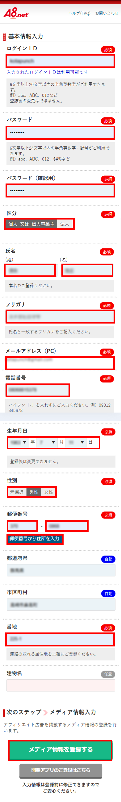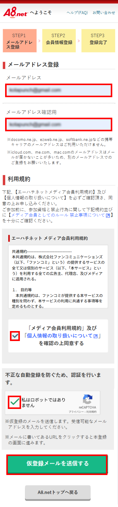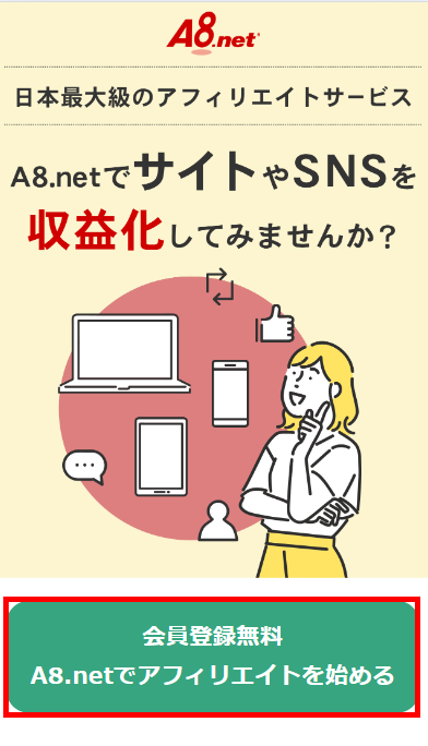 A8.net登録手順 ①A8.netの登録サイトにアクセスA8.netの登録サイトにアクセスし、会員登録ボタンをタップします。 ②メールアドレスの登録 ③送信完了 ④メールアプリ確認メールアプリを開き、登録用URLをタップします。 ⑤基本情報の入力 ⑥サイト情報の入力 ⑦口座情報の入力 ⑧入力内容の確認 ⑨登録完了