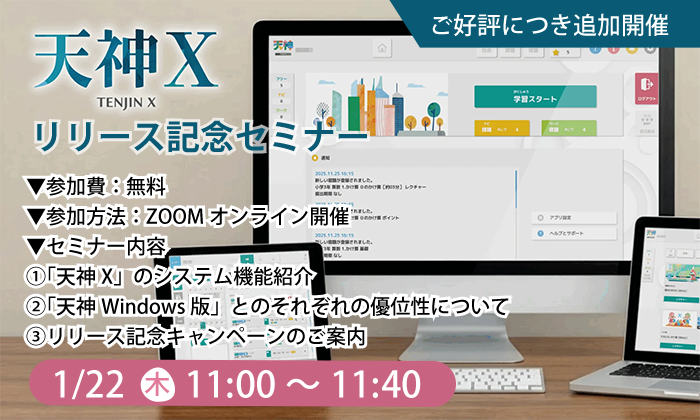 あわせて小学生の学習指導に効果的な教科書準拠のICT教材 「天神」 のご紹介もさせていただきます。