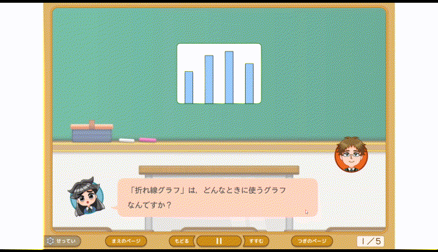 内容は「すすむ」「もどる」などを利用して少しずつ進められるので、「ちょっと気をそらした間に、授業が進んでしまってわからなくなった」なんてことは起こりません。