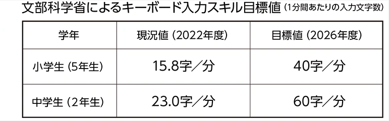 学校ではパソコン利用が広がり、文部科学省も「キーボード入力はこれからの学びに欠かせない技能」としています。