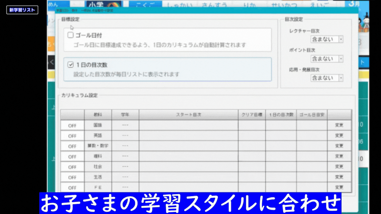 お子さまの学習進捗に合わせて、「今日やるべき目次」を天神が自動でリストアップ。