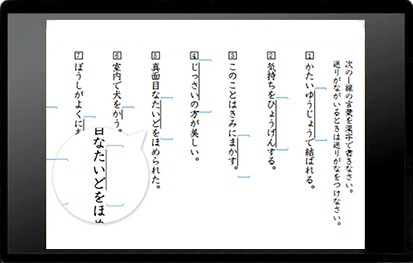 また朗読問題では、読んでいる場所をハイライト表示しながら進み、語彙力・読解力・国語力アップをサポートします。